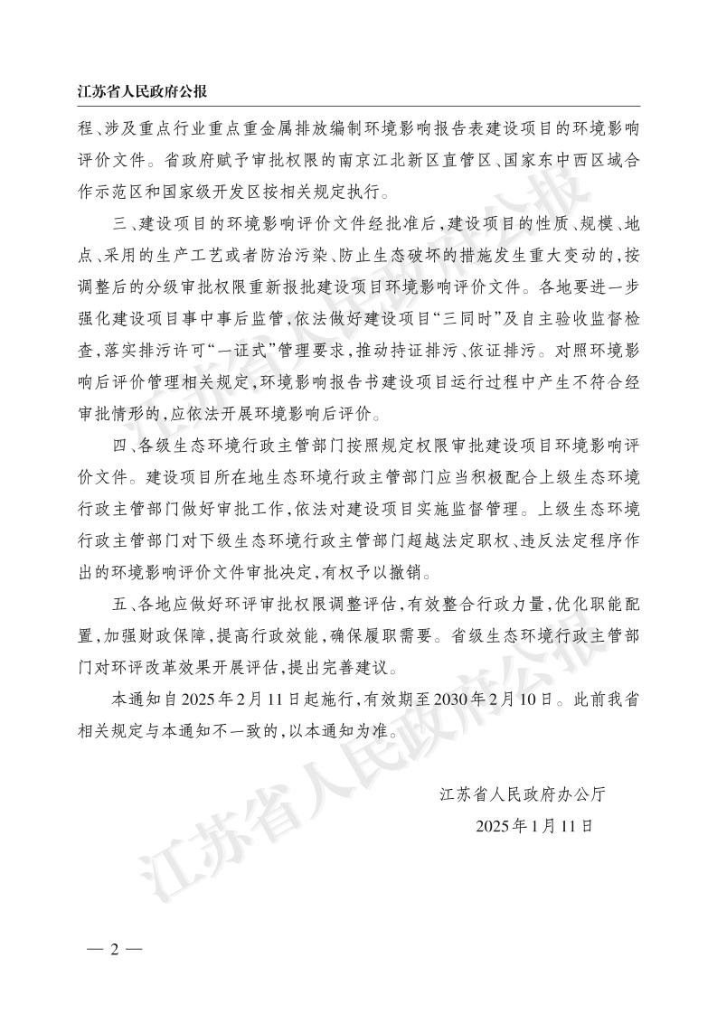 江苏省省级生态环境行政主管部门审批环境影响评价文件的建设项目目录(2025年版)
