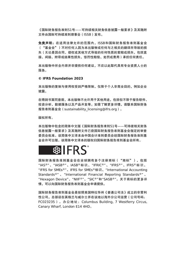 ISSB:国际财务报告准则S1号-中文版